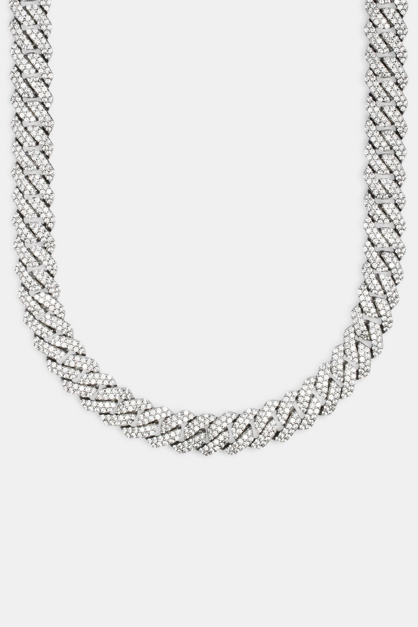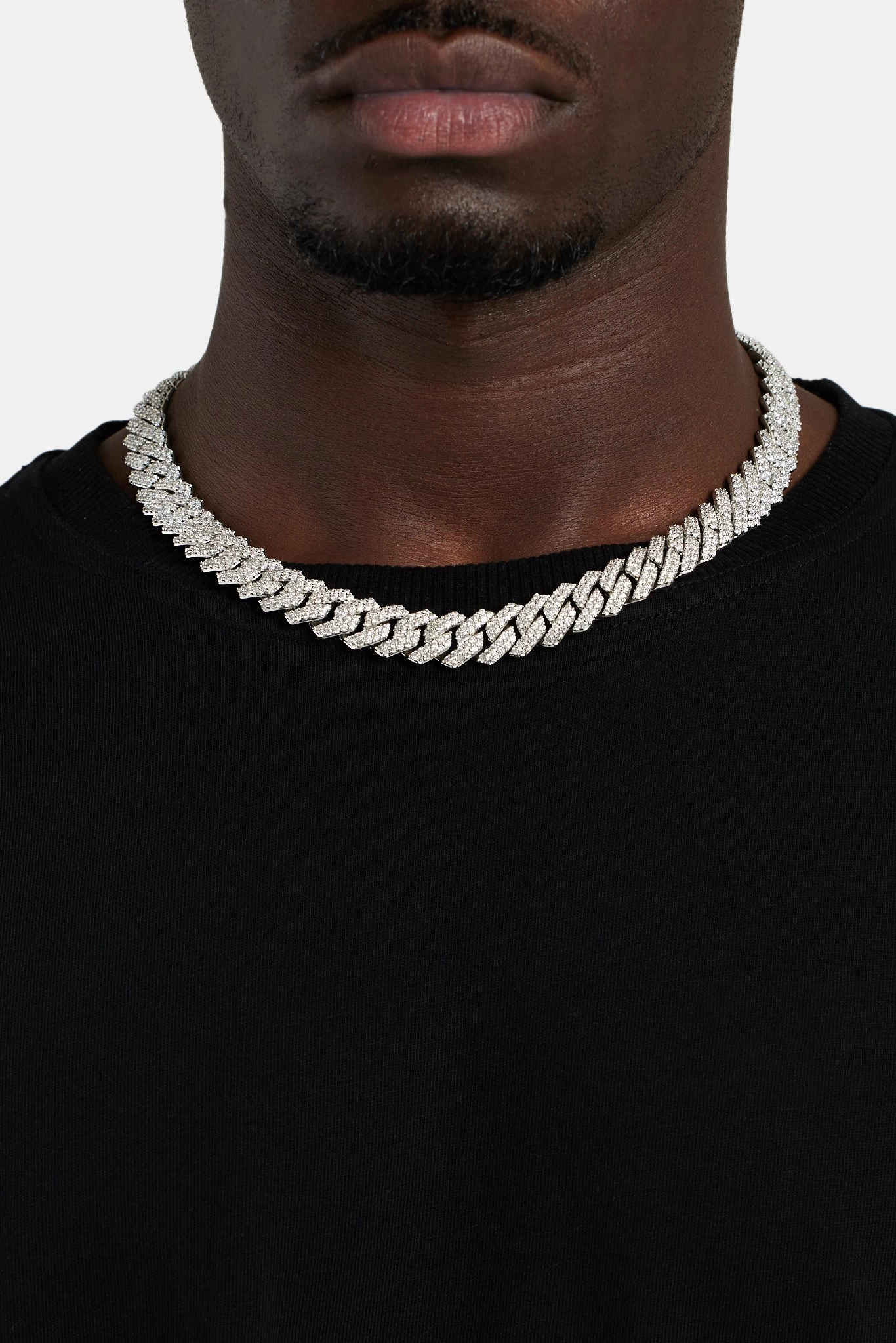 Shine big in a Cernucci iced out Cuban Chain. Our custom designed prong link men’s chain with hand set stones makes a statement. The 14mm links are flooded with stones and shine from every angle. A Cernucci classic.