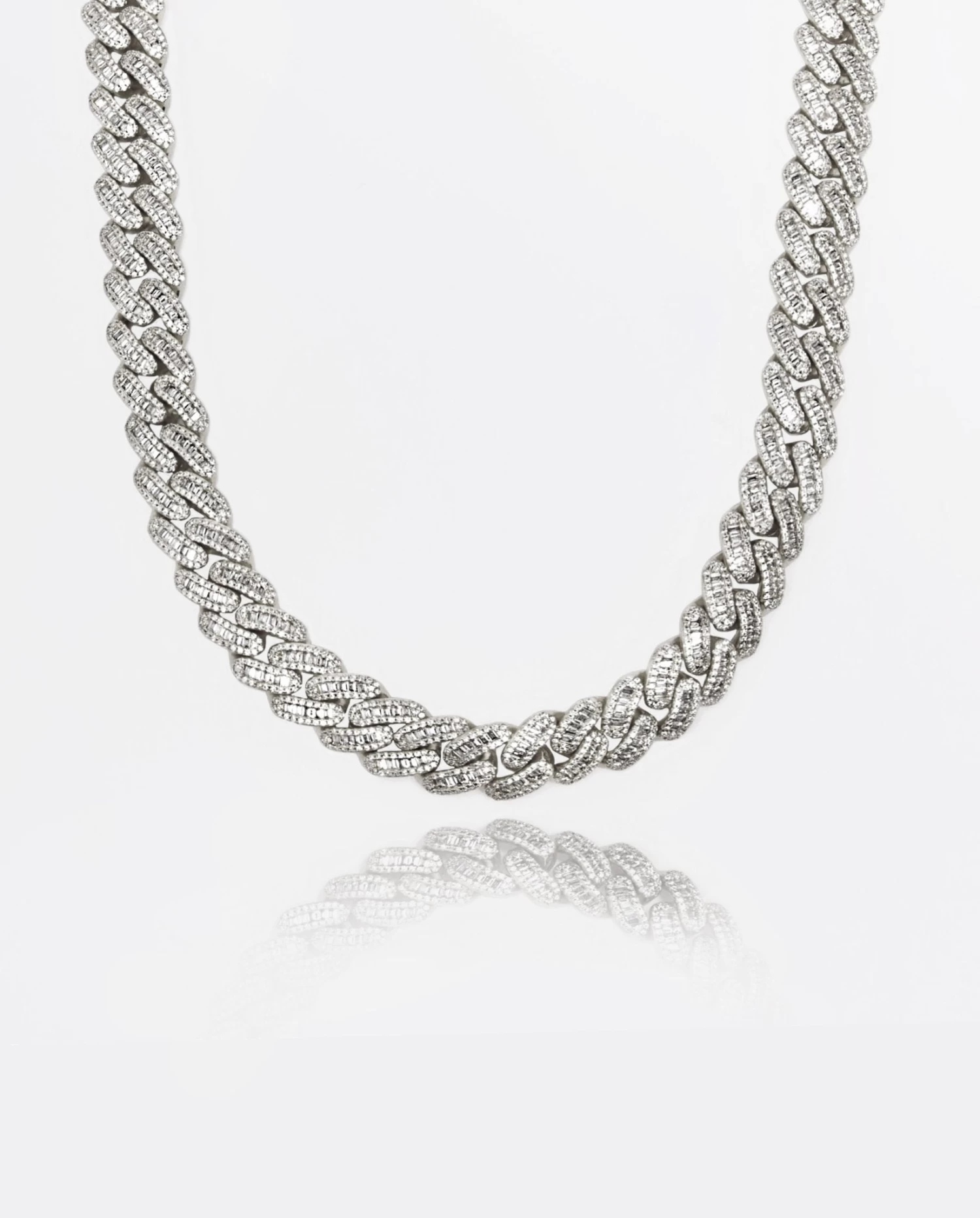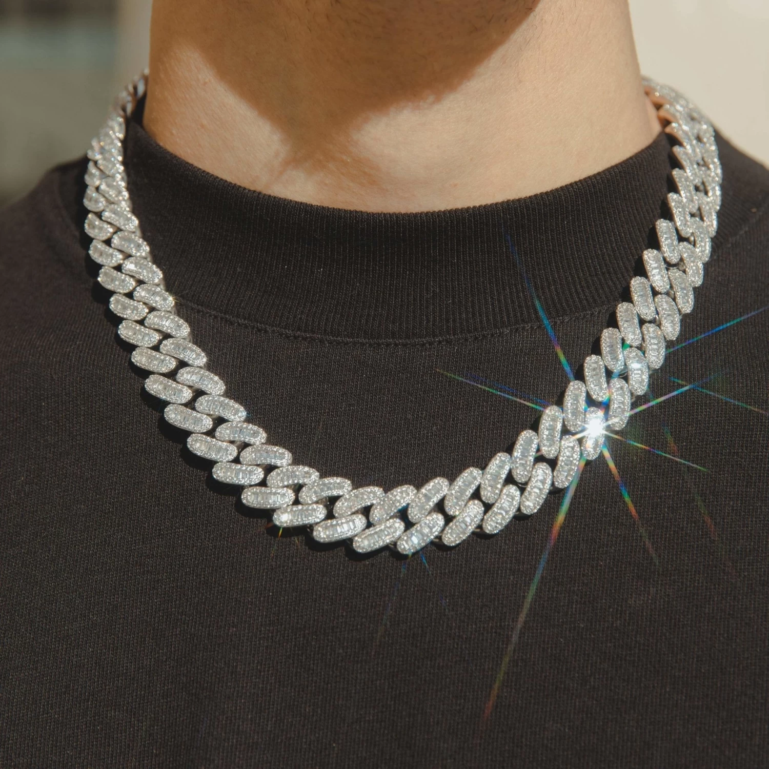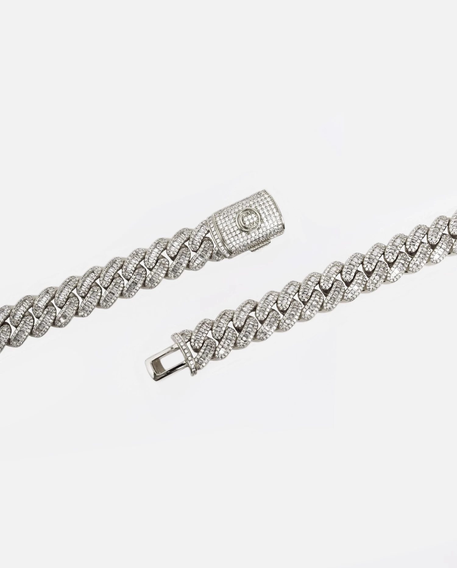 We took our classic Cuban Links and added baguette-cut stones. This is a statement piece that will do the talking for you. The perfect drip to upgrade any fit.