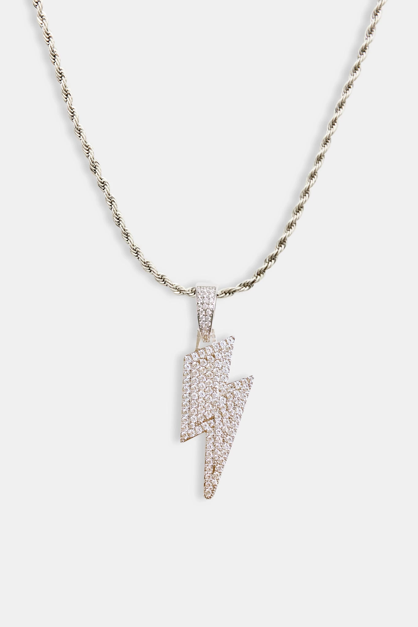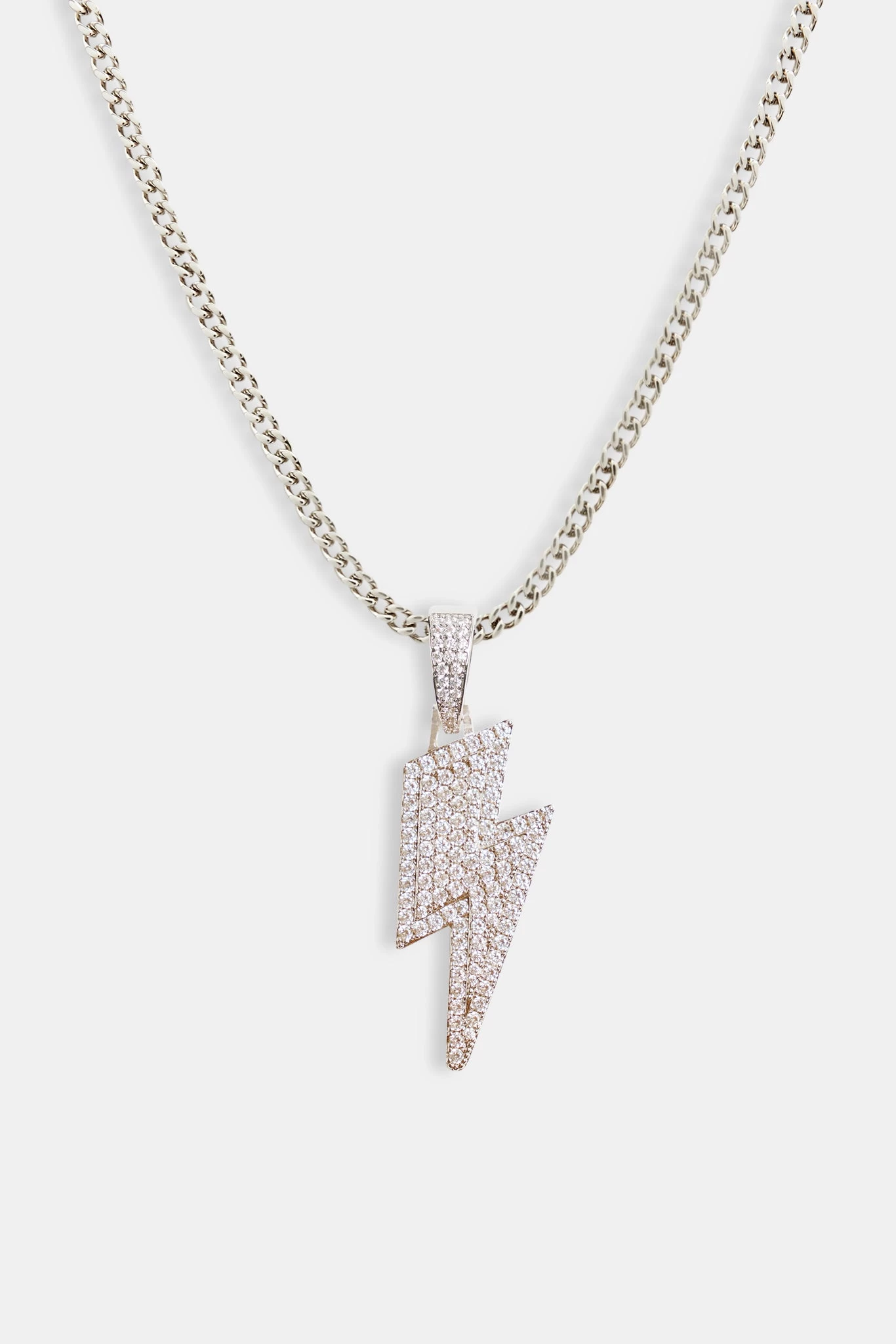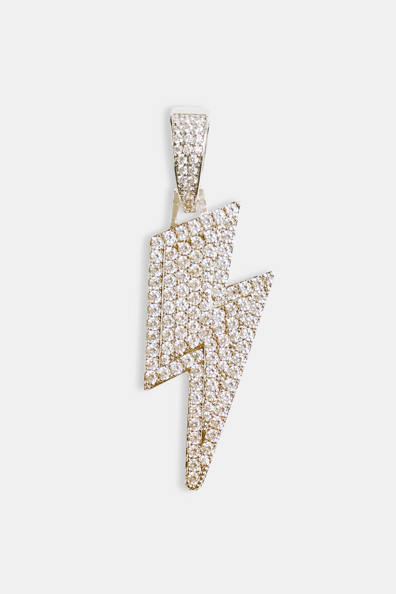 Iced Lightning Bolt Motif, Rhodium Plated and finished with Cubic Zirconia stones. Unmatched shine for unparalleled style.