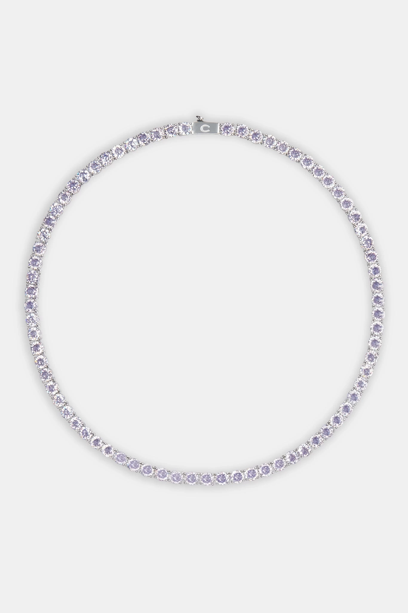 Want a classic look with big shine? Cernuccis iced tennis chains have become a classic. Featuring lilac hand-set stones throughout.