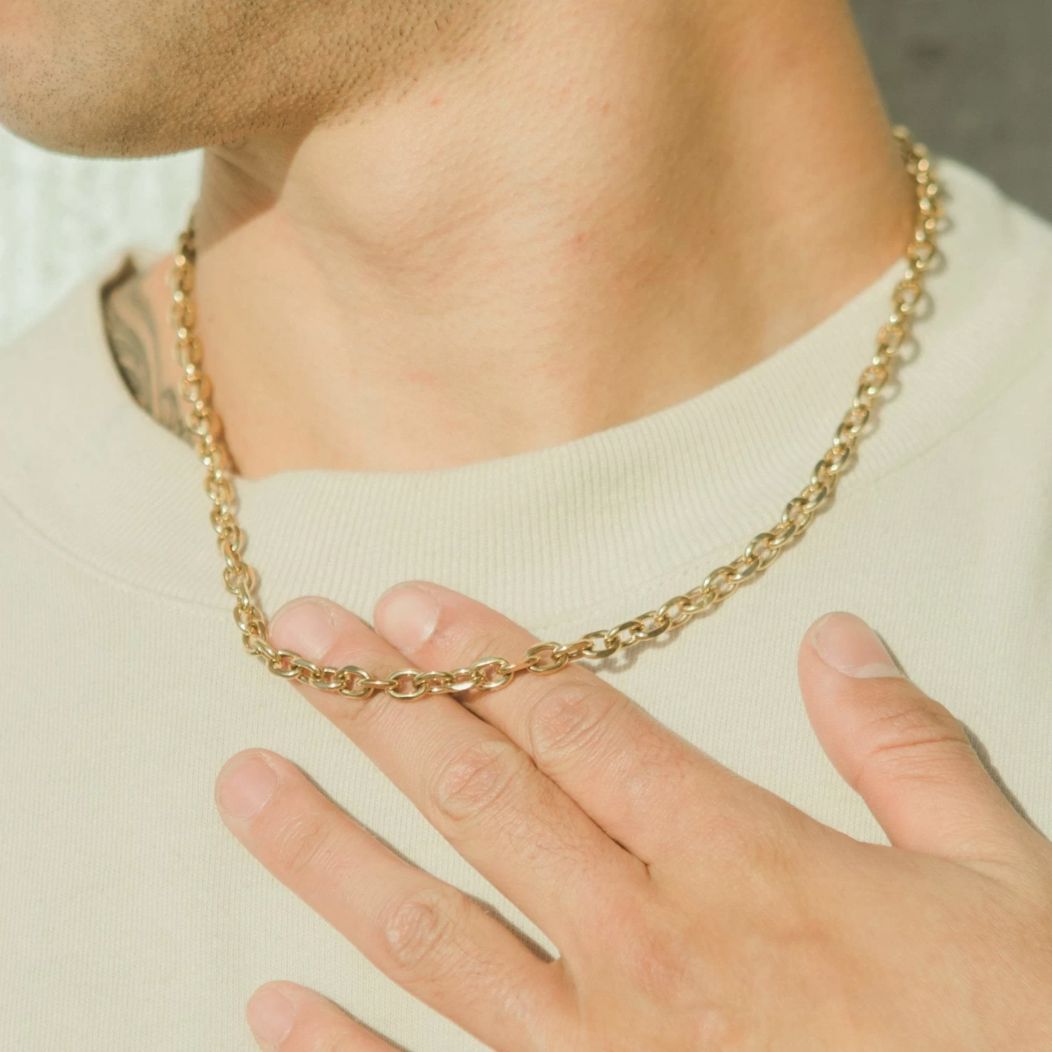 This chain is made with 316L stainless steel and can be worn 24/7.