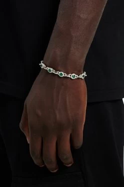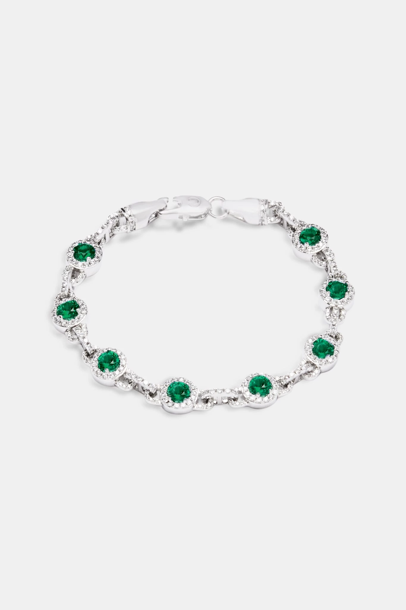 Iced out link bracelet with green centre stones for an unparalleled shine. Upgrade your fit with the perfect piece.