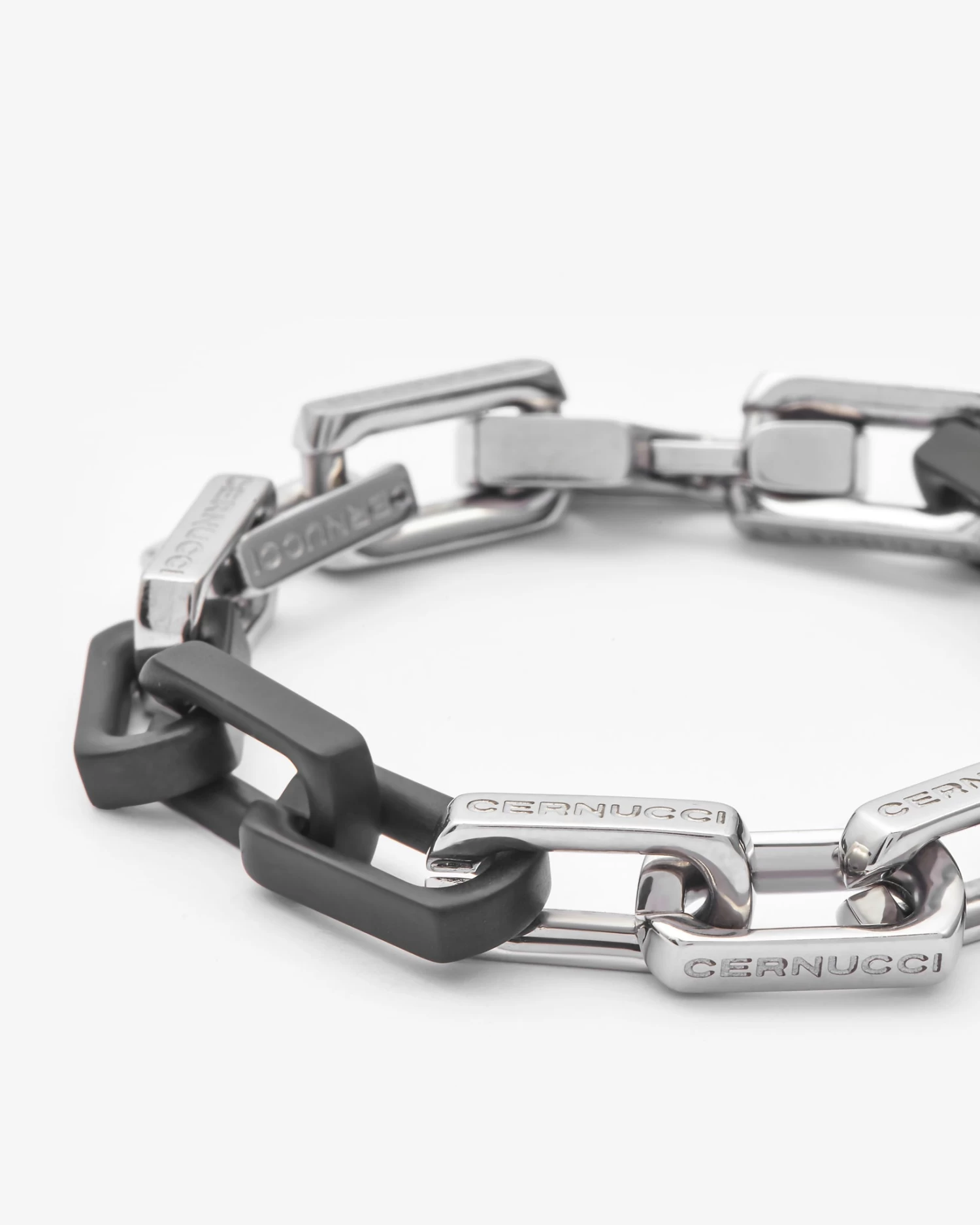The Cernucci Chain Necklace & Bracelet is expertly constructed from stainless steel and features dual-coloured links, each finely engraved with the our new logo. They can be worn on their own or paired up for maximum impact.
