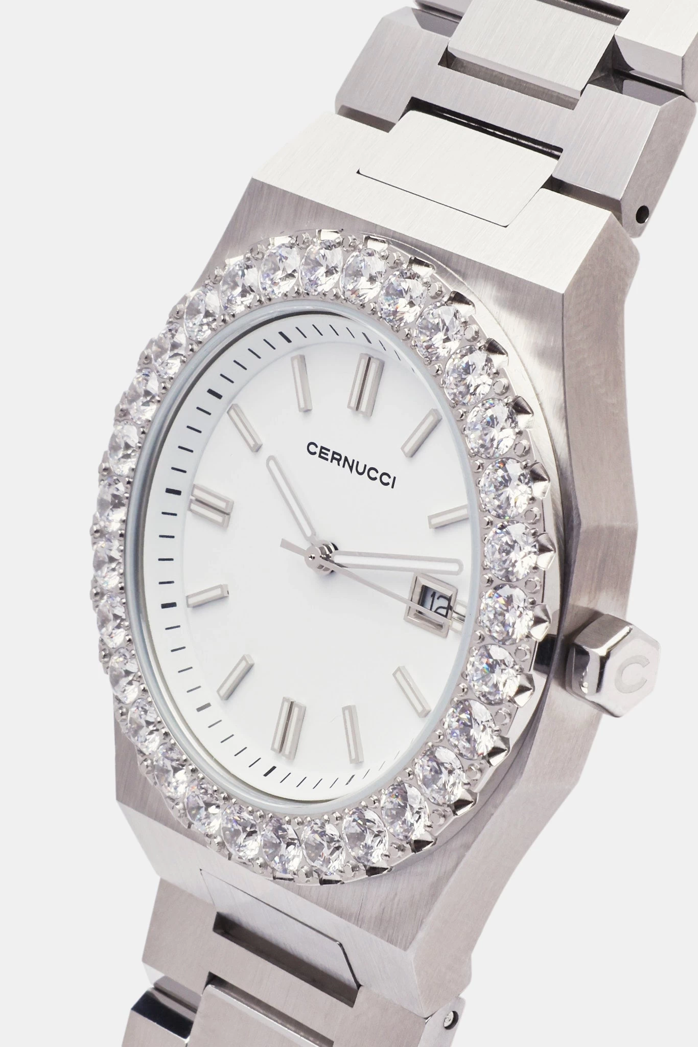 Iced bezel and polished strap with Cernucci branded face, water resistant and embossed dial.Â