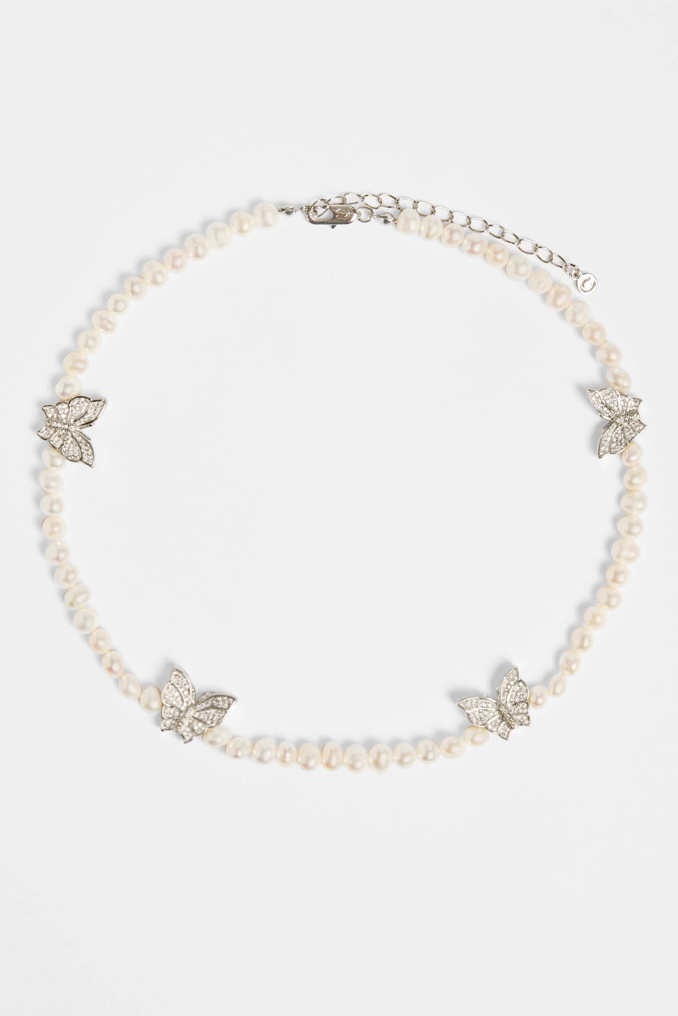 Our hand threaded Freshwater Pearl and Iced Butterfly Necklace will give you a look like no other. Stack these or rock them on their own and youll be standing out in the crowd this summer.