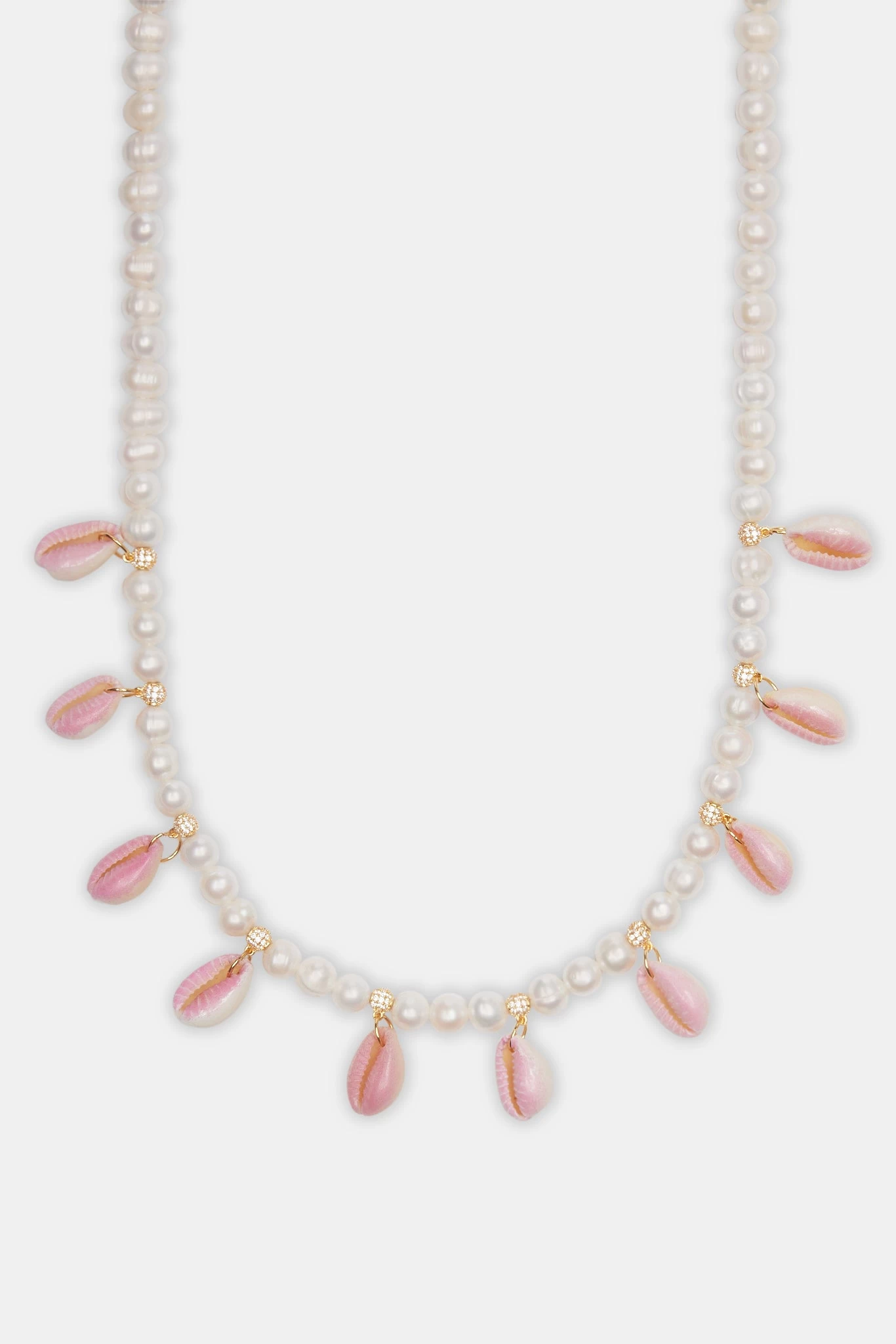 Match this piece with more pearls or Ice for a unique look. Our hand threaded Freshwater Pearl Pink Cowrie Shell Necklace will give you a new look.Â