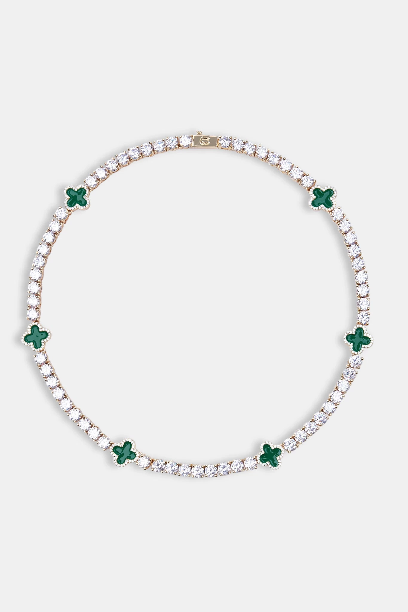 Our Green Motif Tennis Chain creates a completely different and unique shine. Set yourself apart from the rest.