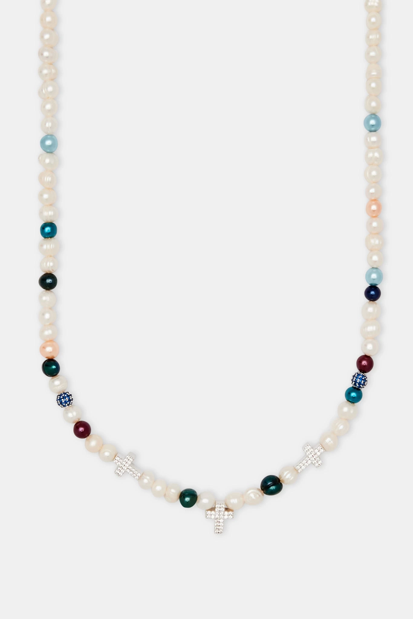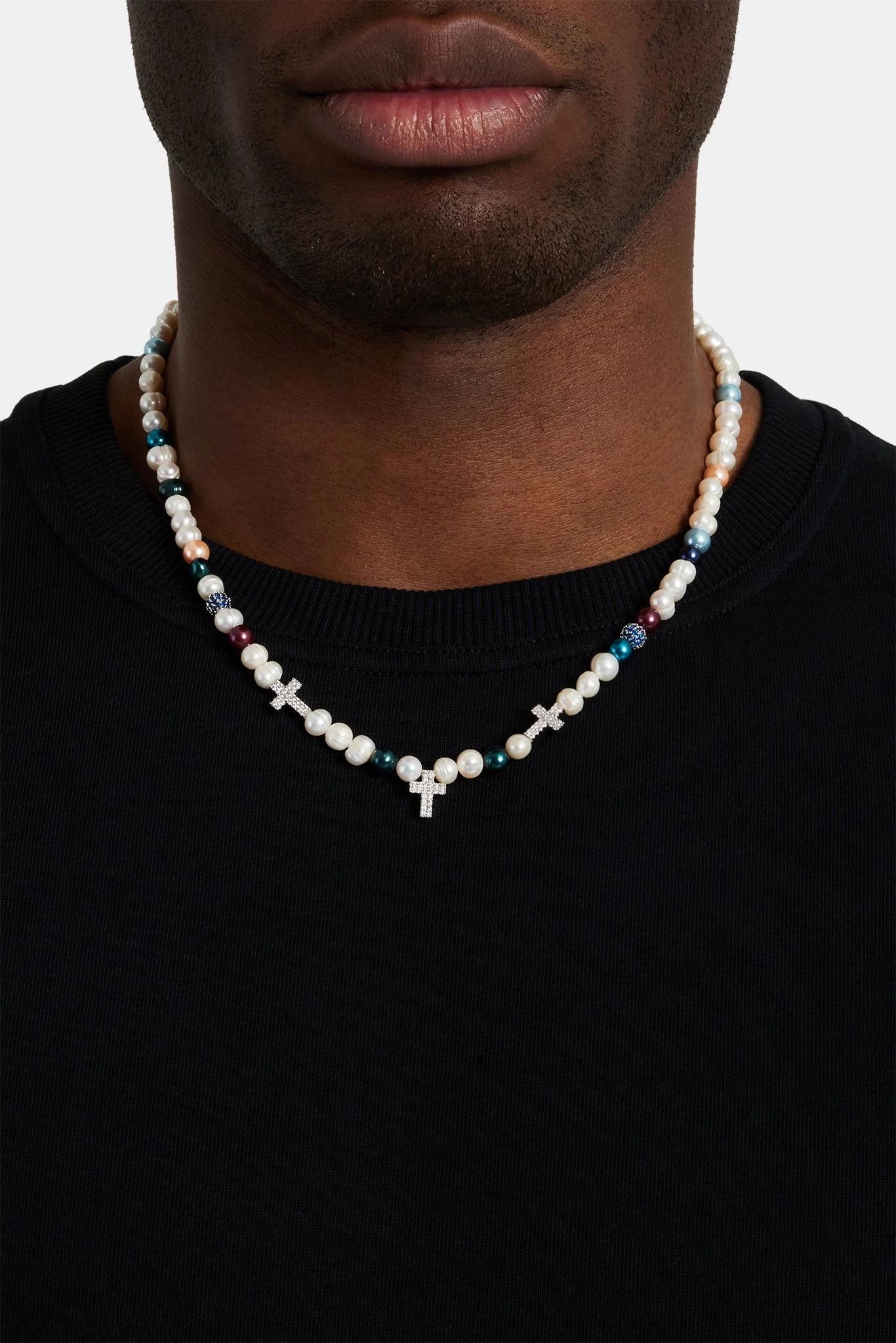 Our Iced Cross Freshwater Pearl Bead Necklace go hard. Pair with any pearl bracelet, to be worn for any occasion.