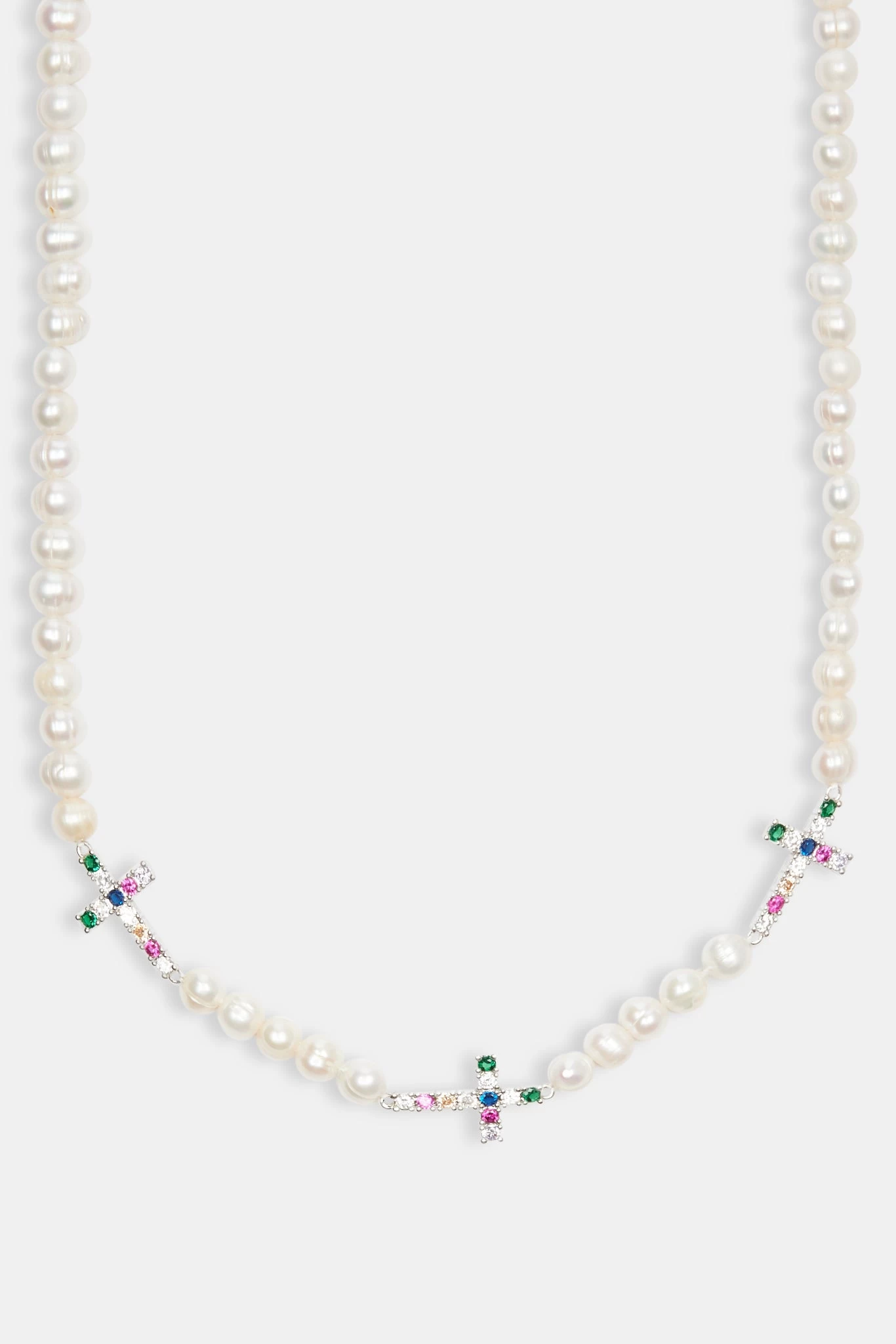 Our iced out cross & freshwater pearl necklace is the coldest in the game. Layer with ice on more pearls, either way will make a statement. This one hits different with the ice and pearl combo.