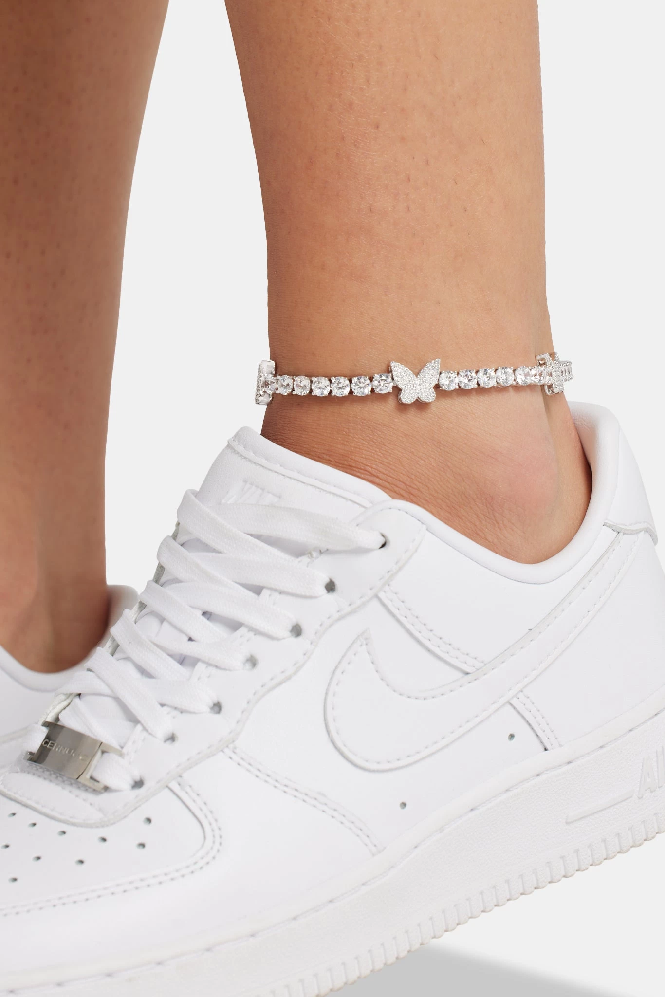 This anklet is the perfect piece to complete your summer look. Butterfly motif formed with hand-set stones for extra shine.