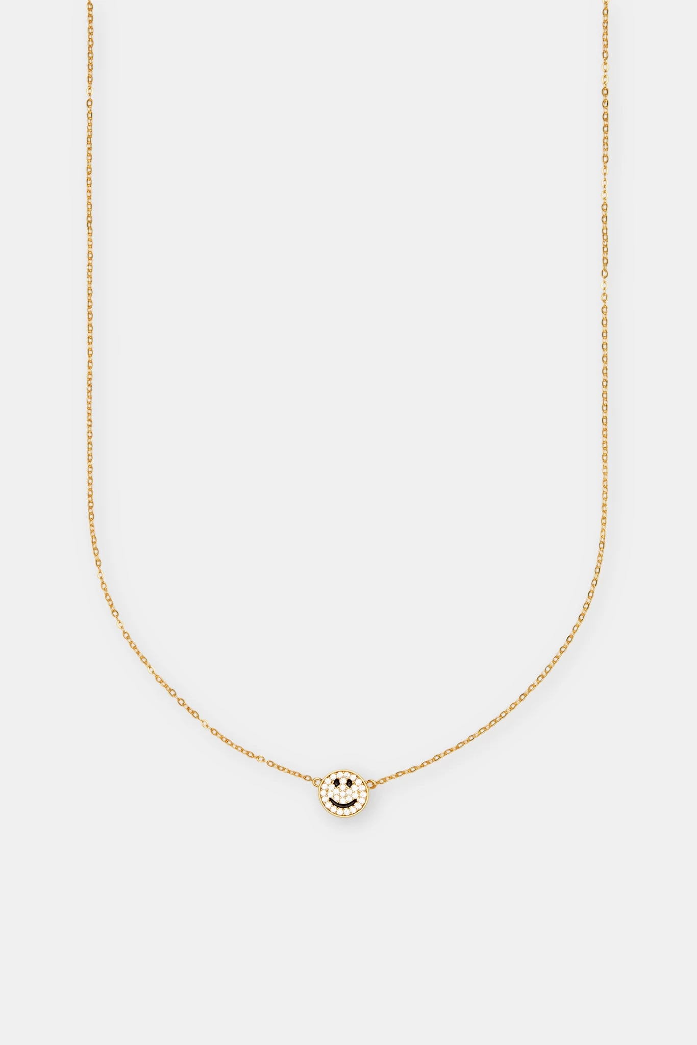Our Iced Happy Face Motif Necklace goes hard. Layer up with other necklaces & pendants or wear alone. Stand out pendant right here.