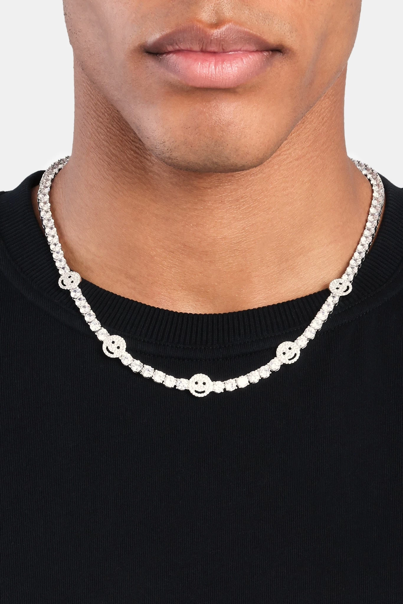 Our new iced out tennis chain with happy iced faces, guaranteed head turner as it catches the light.Â