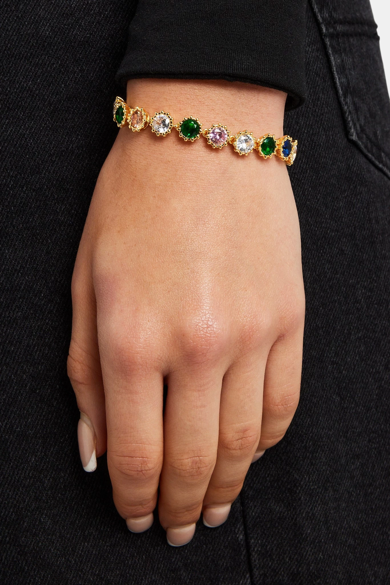 Want a classic look with big shine? Cernuccis Iced Multi Colour Gem Tennis Bracelet is a must have. The bracelet is durable under any condition. Cop once, wear forever.