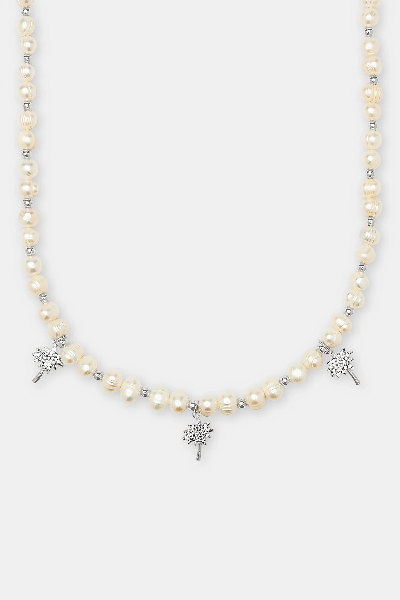 Our Iced Palm Tree Freshwater Pearl Necklace. Pair with our Freshwater Pearl Bracelets for twice the flex. This statement piece is to be worn for any occasion.