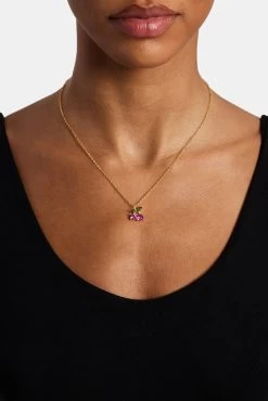 Our Iced Pink Cherry Necklace goes hard. Layer up with other necklaces & pendants or wear alone. Stand out pendant right here.