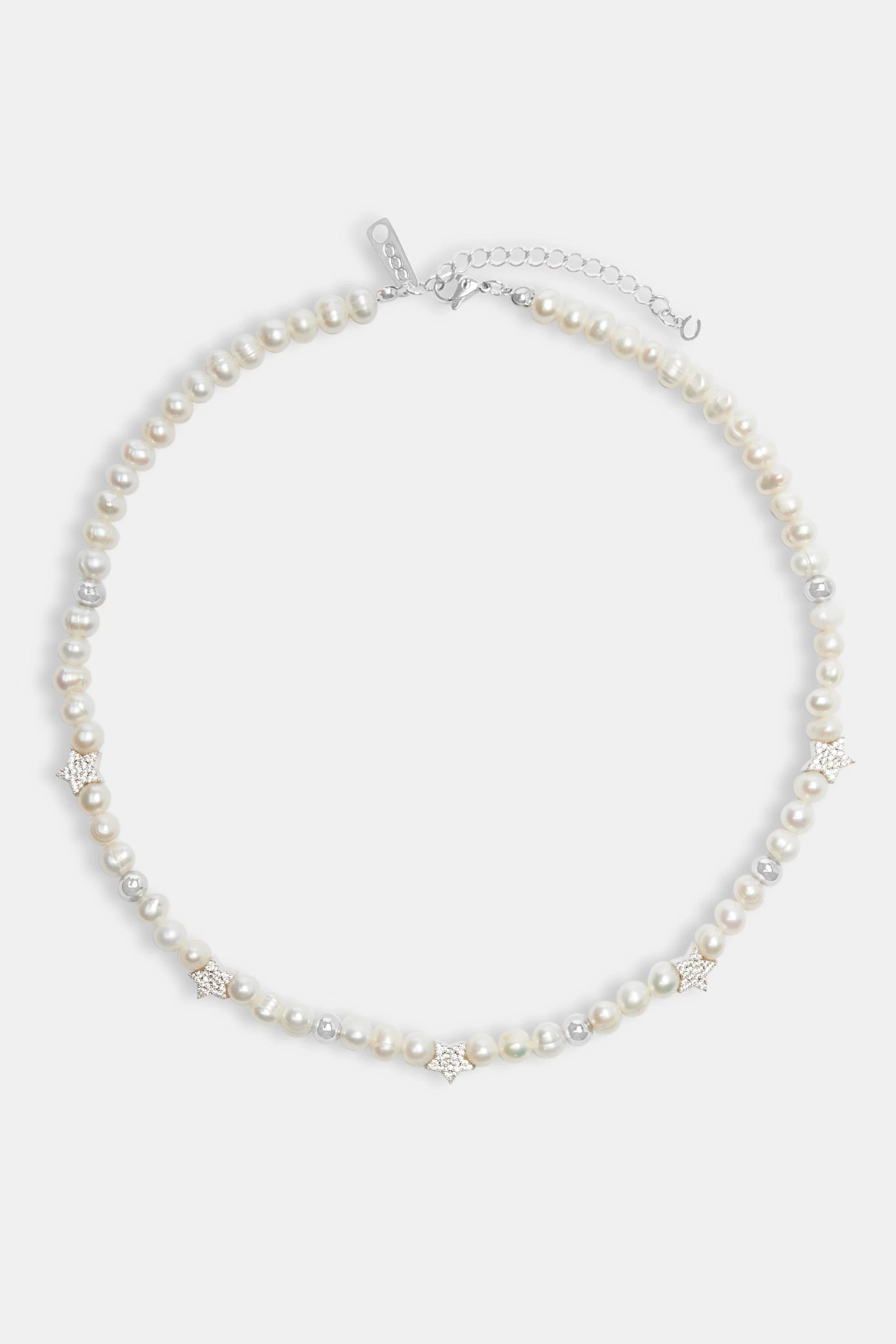 Our Iced Star Bead Freshwater Pearl Necklace . Pair with our Iced Star Bead Freshwater Pearl Bracelet for twice the flex. This statement piece is to be worn for any occasion.