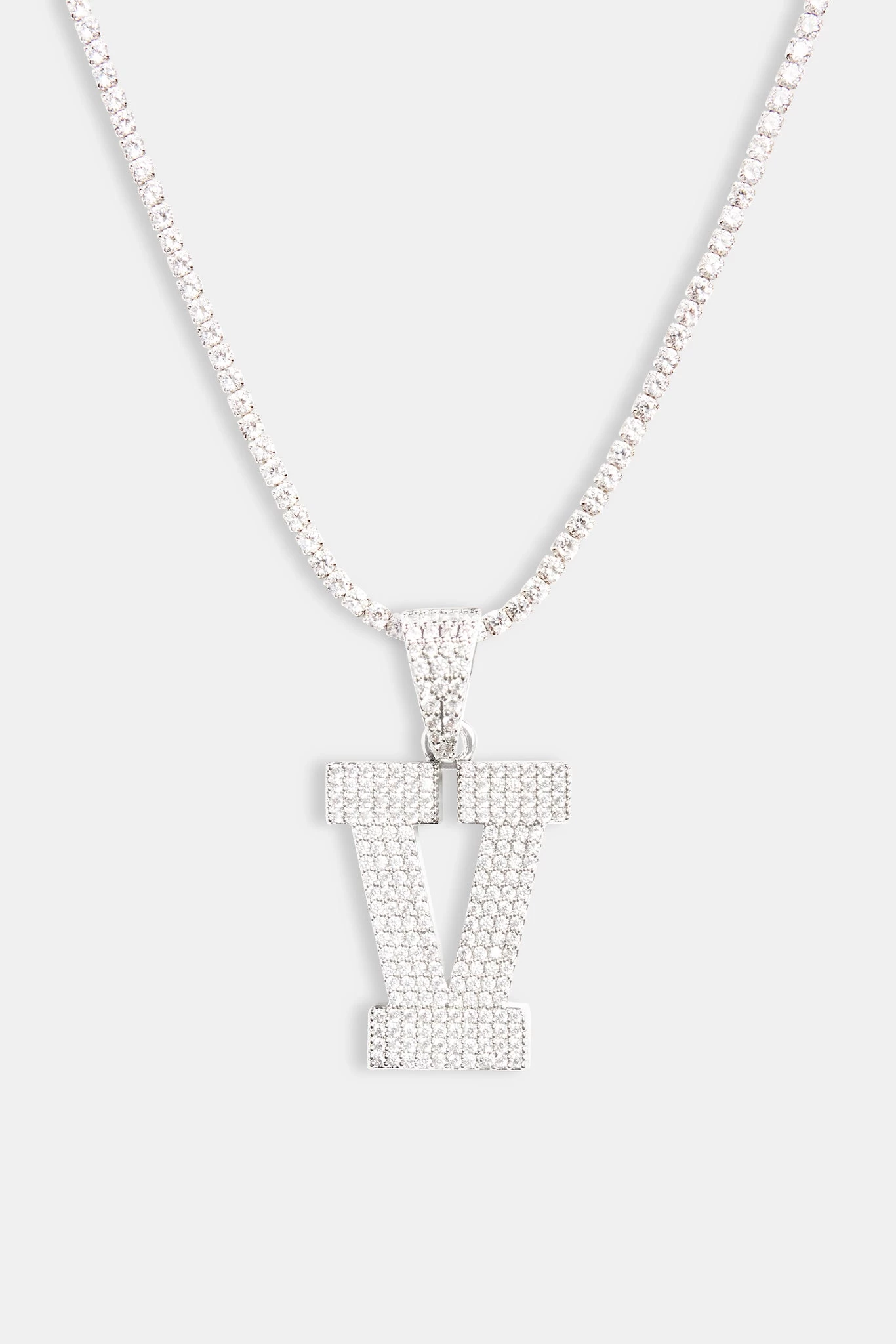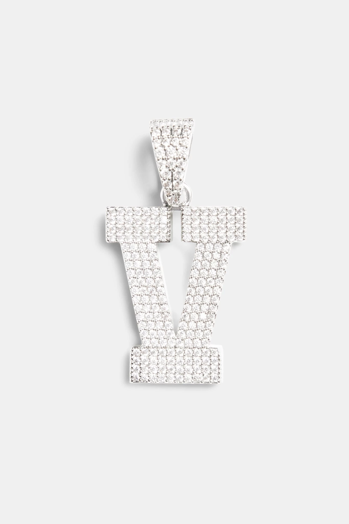 Iced Letter Motif Pendant in White and finished with Cubic Zirconia stones.