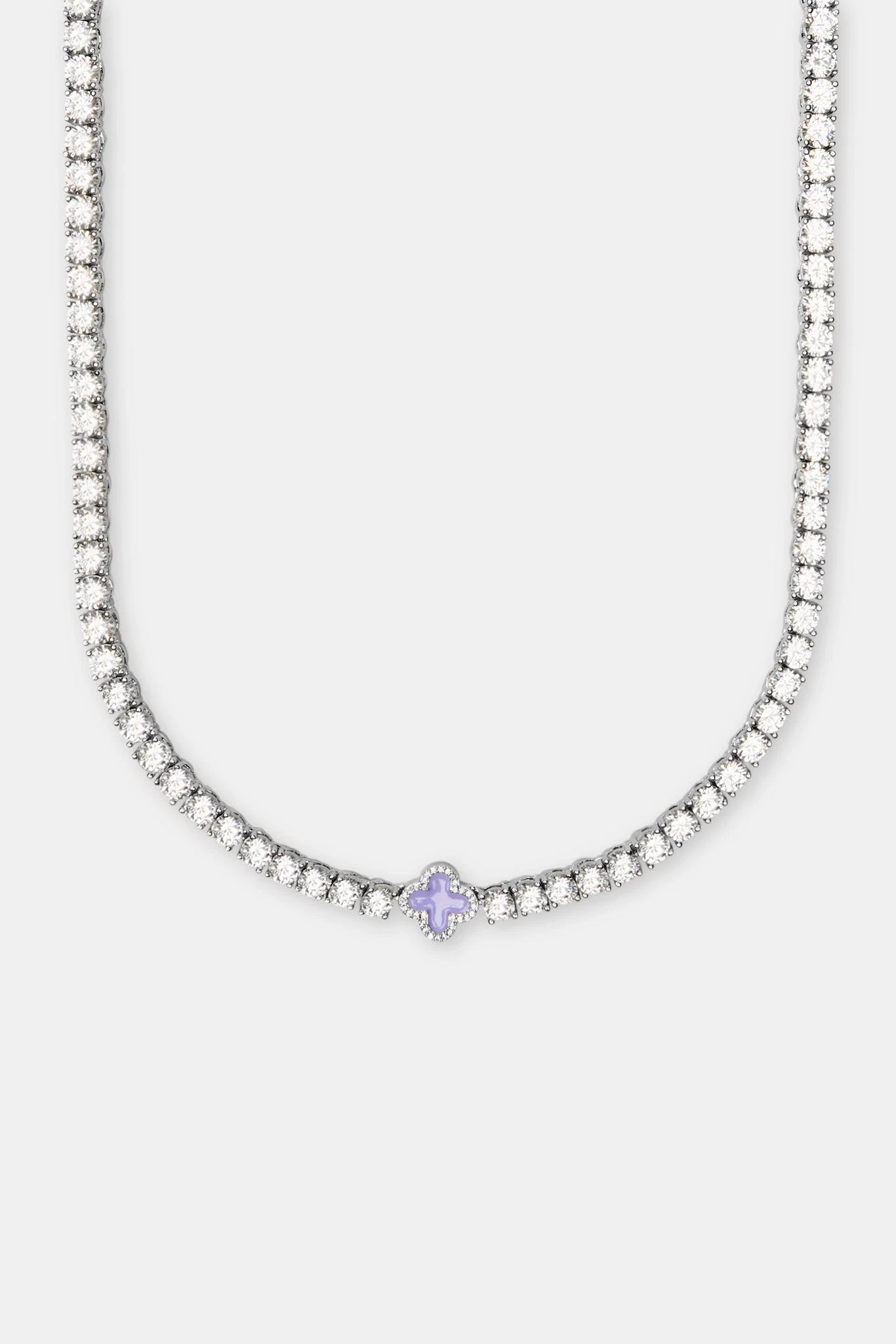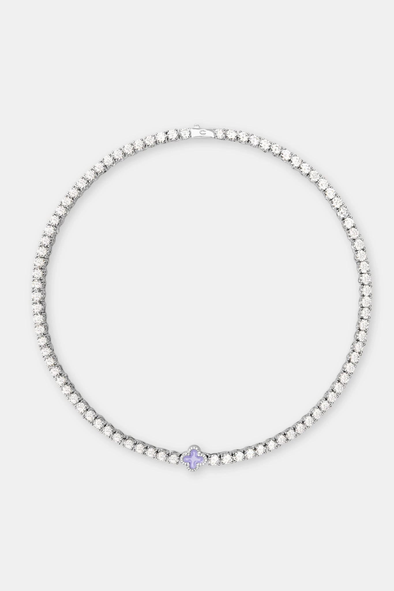 The one you been waiting for. Our tennis chain with Lilac Motif is here to make a statement. Can be worn as a single chain or layer them up.