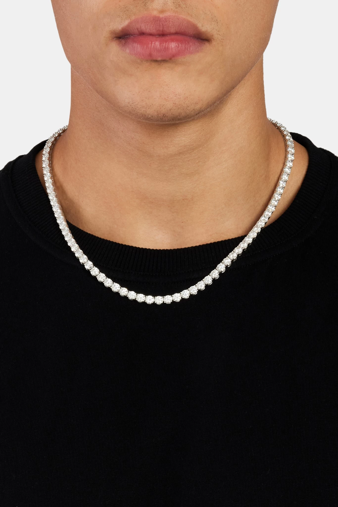 Our classic moissanite tennis chain had a round brilliant cut and VVS clarity meaning the diamonds are completely colourless on the eye. They will test positive as diamonds on most handheld diamond testers. The perfect alternative to large diamonds that cost thousands.