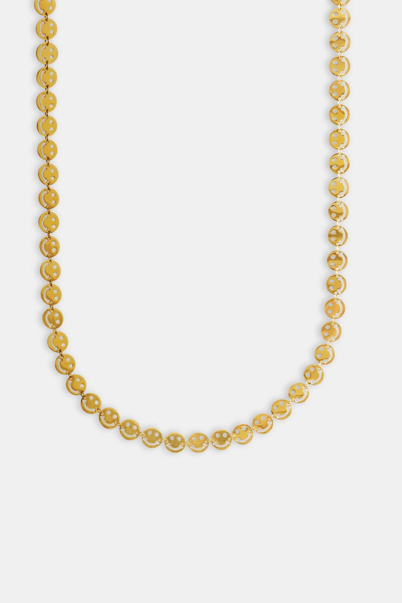 Happy Face Motif Chain, Rhodium Plated. Made with 316L Stainless Steel and can be worn 24/7