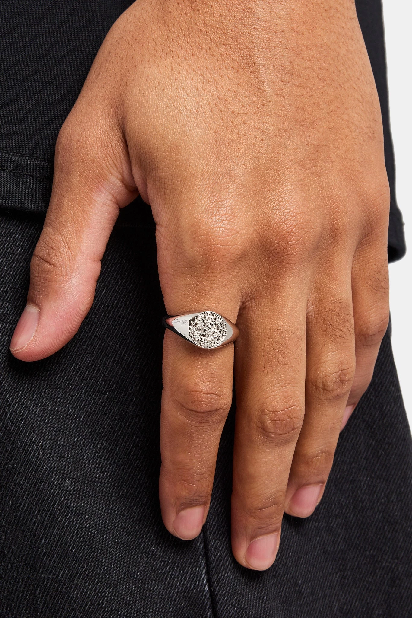 Looking to make a statement? Add our Iced Hexagon Signet Ring to your collection. To be worn for any occasion.