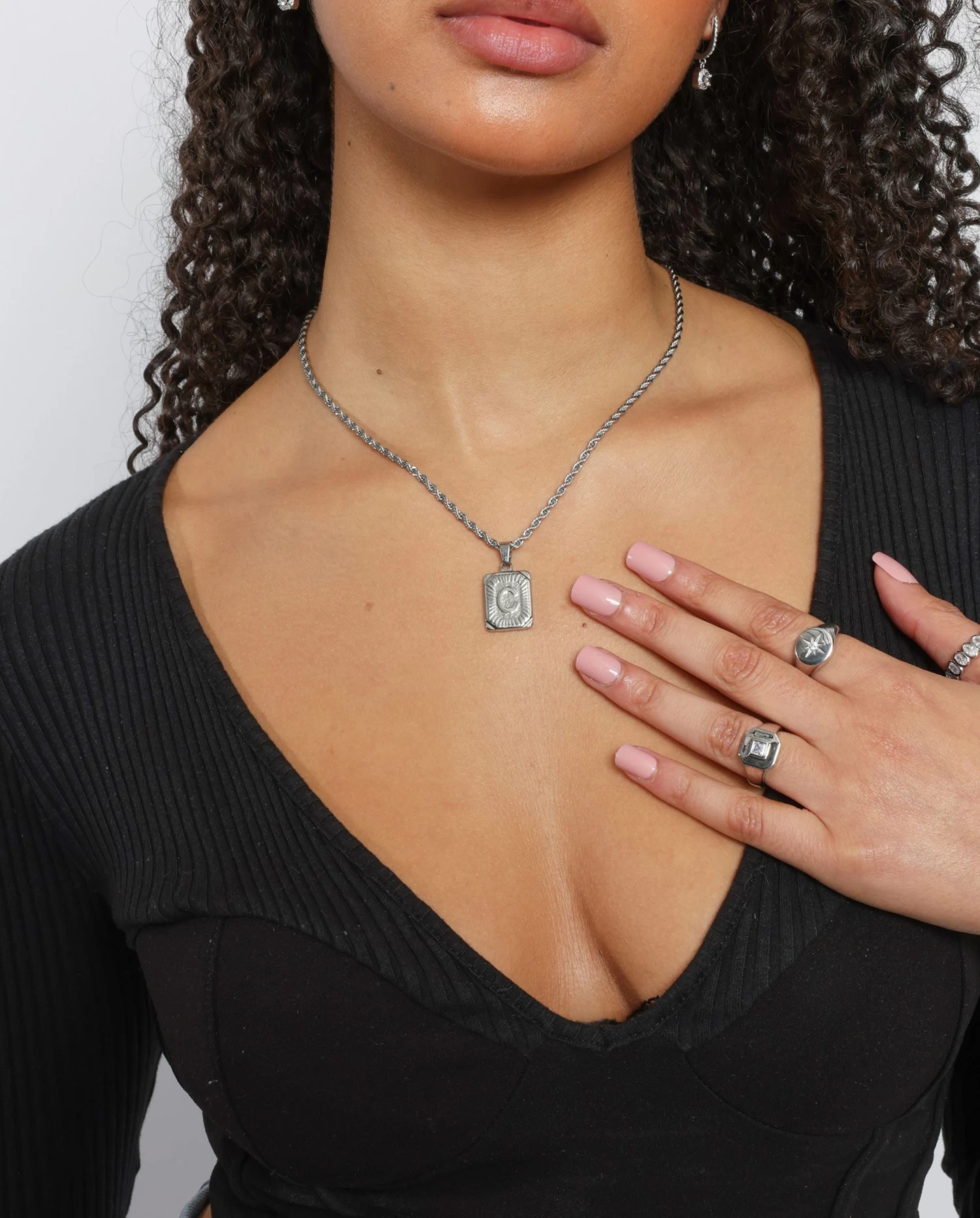 This pendant is made with 316L Stainless Steel and can be worn 24/7.